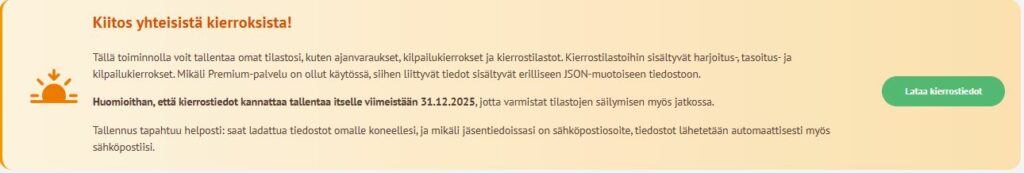 – Harjoitus-, tasoitus- ja kilpailukierrosten tuloskortit